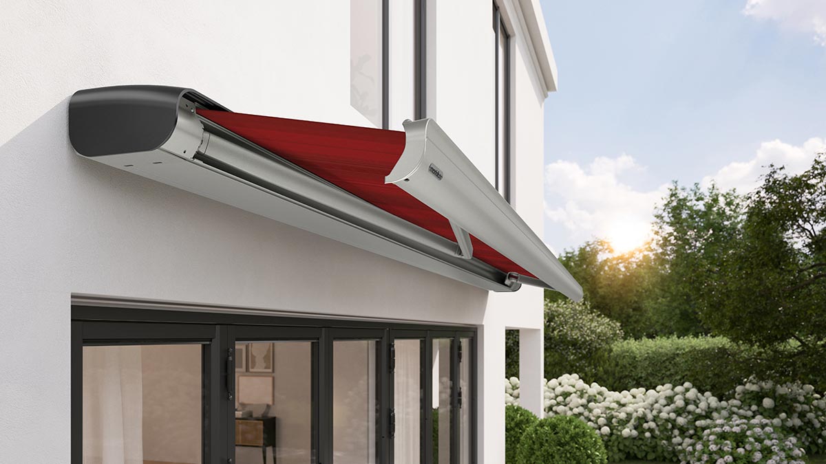 Die schlanke ovale Kassettenmarkise punktet mit Stabilität und Vielseitigkeit gerade bei großen Flächen.